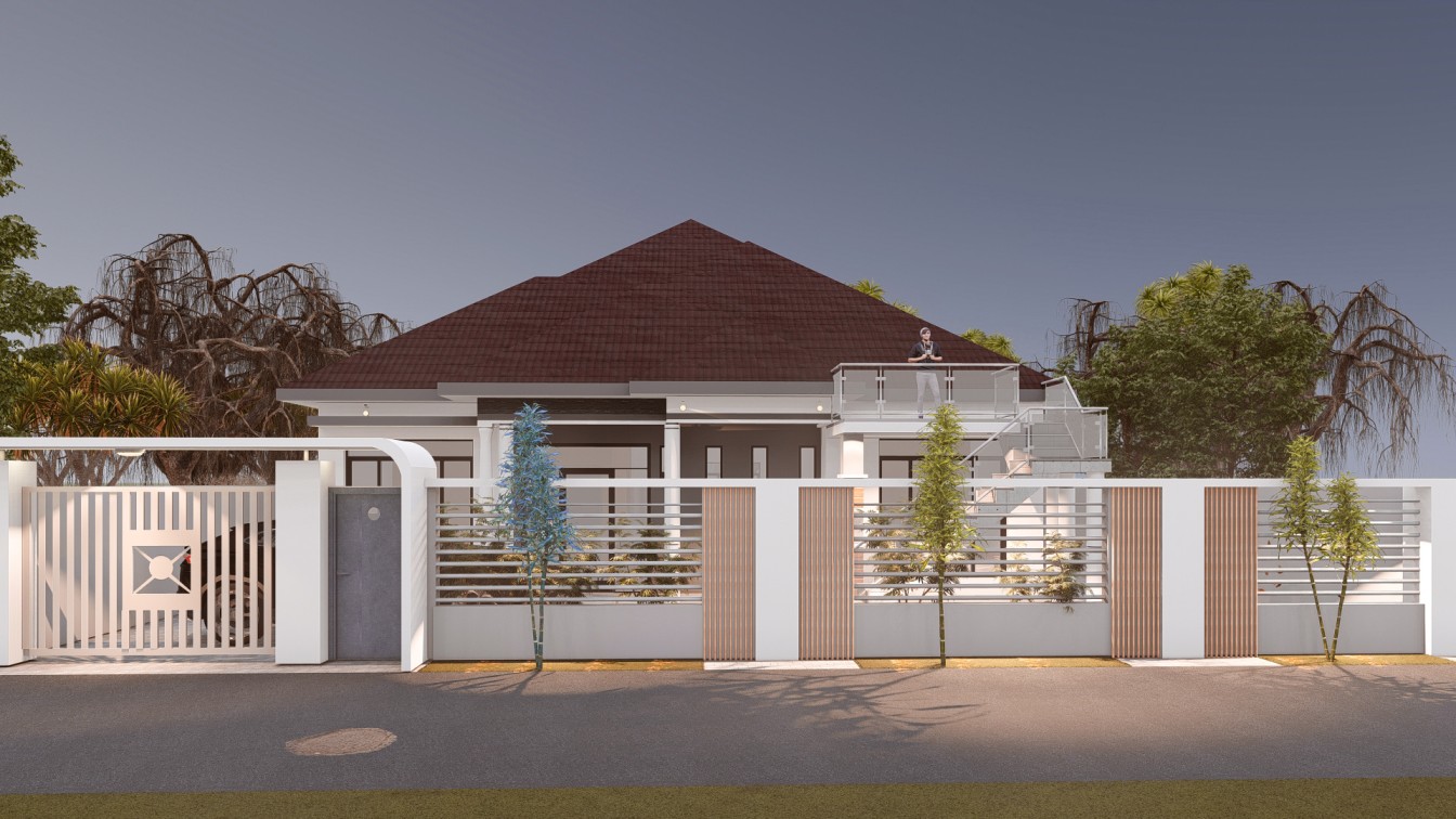 4 bedrooms, kitchen, store, living room, dinning room, 3 bathrooms, 2 car parking . The plot size is 302 Mm2